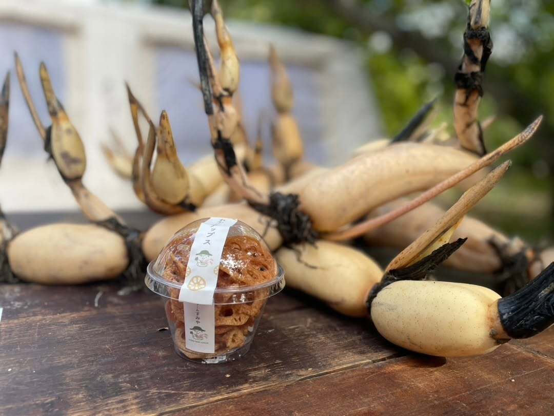 角屋」様のレンコンも参加 ※天候や成長、実習によって販売できないものがありますので、ご了承ください。