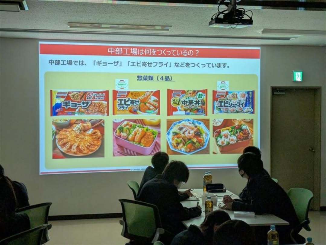 味の素冷凍食品中部工場 ギョーザやエビ寄せフライなど人気商品の製造工程を見学しました。 異物混入体験