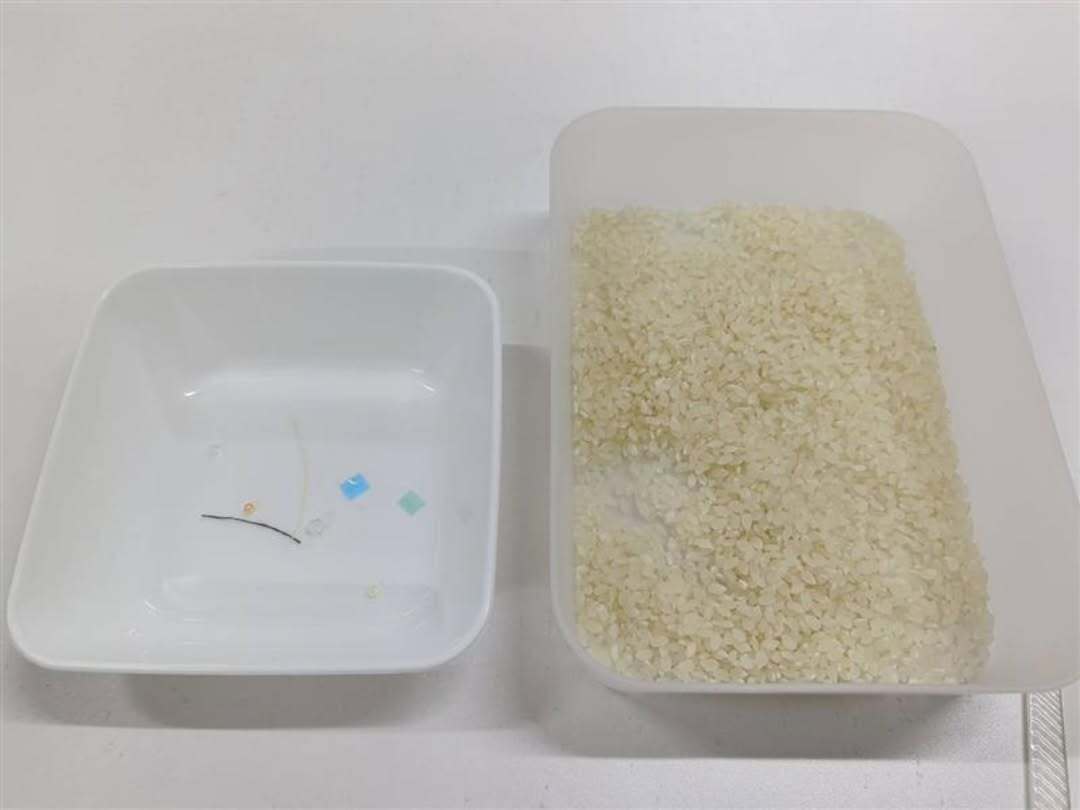では米の中からビニール片などを探す作業に挑戦。 食の安全を守る現場を肌で感じました。モンテール工場・