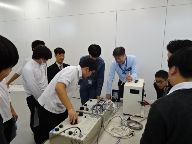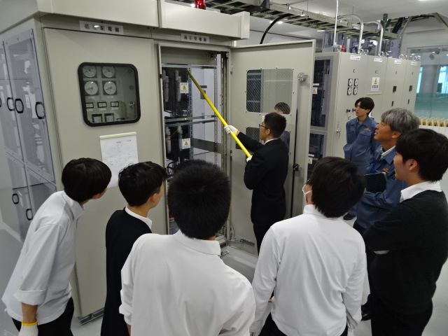 高圧機器操作体験では本校OBの社員の方に操作をしてもらい、生徒が操作したときよりも経験の差もあり操作がスムーズで、経験の大きさも理解できたと思います。