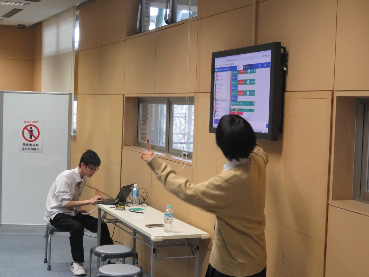 10月12日に、福井県児童科学館「エンゼルランド」にて、電気コース3年生4名が課題研究の一環として、microbitを用いたプログラミング教室を開催しました。