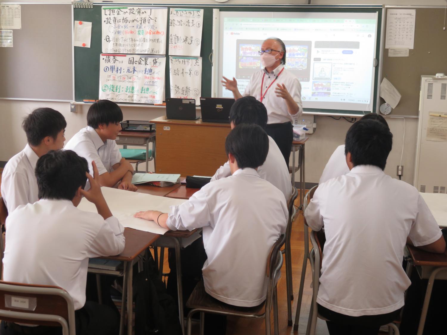 先週末に行われた電気コースの「ふくいの産業」の時間に、ビジネスコースの教員による「お金に関する授業」が行われました。