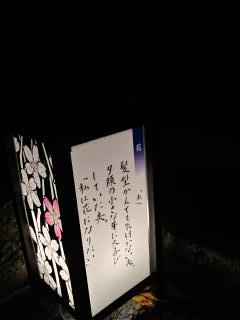 部員と教員で一筆啓上賞作品を手書きした行灯が通路を照らしています。