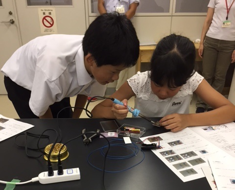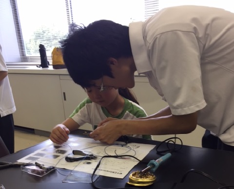 小学生にハンダ付けを指導