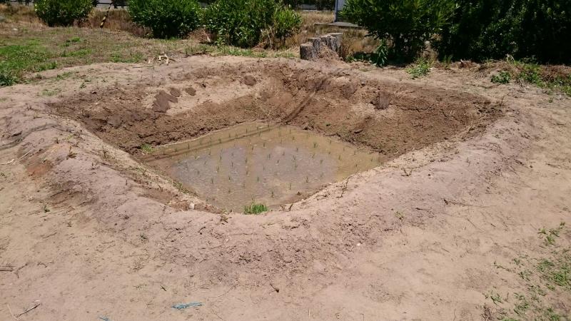 みんなで穴を堀り、水を入れて小さな水田をつくり田植えをしました。
