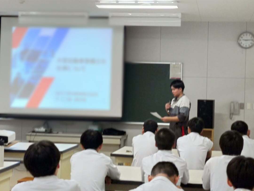 7月8日(火)1年V組で出前授業が行われました。 今回も昨年に引続き、福井日野自動車株式会社様に