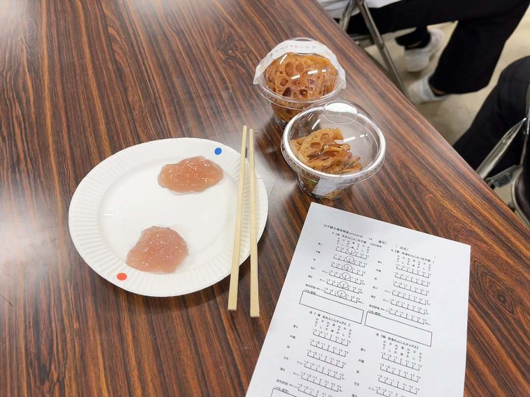 農業コース【坂井高校×グリーンファームすみや様】レンコンで作る蓮餅とレンコンチップスの食味試験