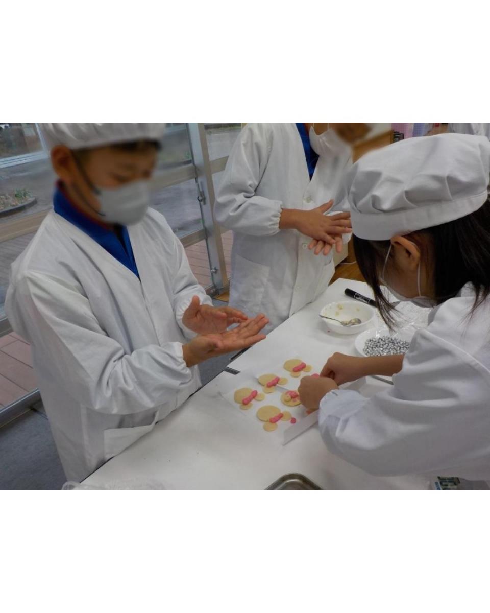 軽にできる”お菓子を考案し、児童と一緒に作りました。 この日のために何回も試作をしたかいがあり、「フ