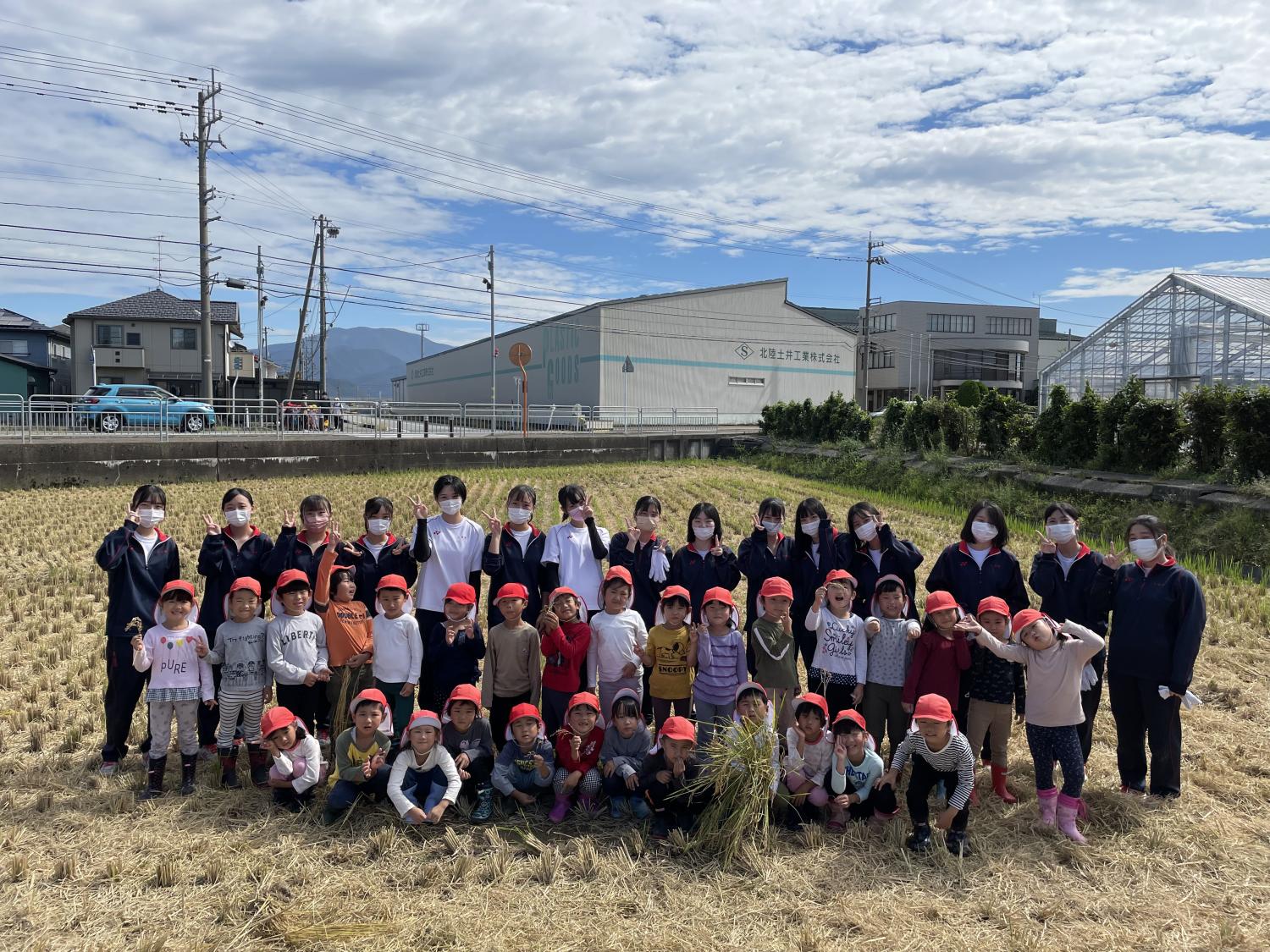 坂井松涛保育園ぞう組さんの子どもたちが、春に植えたお米の収穫にやってきました。