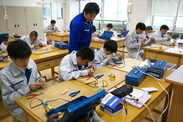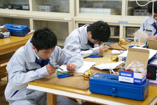 電気コース1年生、最初の実習はテスター製作です。