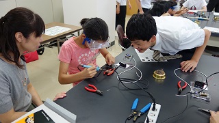 ハンダづけの動画で見たり、先生に実演してもらい学習しました。
