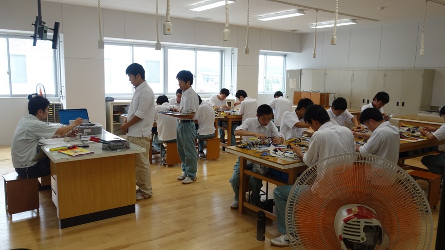 配線作業完了後は、山本先生から一人ひとり点検と細かな指導アドバイスを受けています。