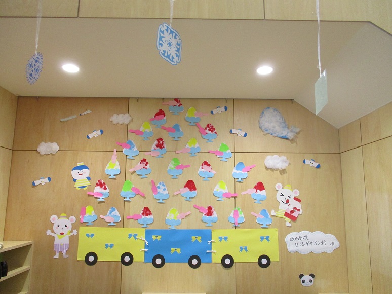 カキ氷は3歳児さんに協力してもらい、夏をイメージした掲示になっています。