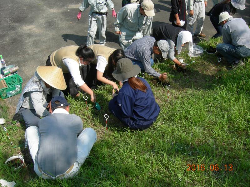 現地作業では、佐奈川の保全区に行き、ポット苗移植作業を行いました。