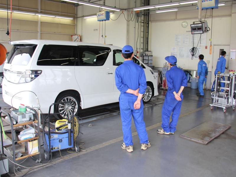 車検整備実習 … 車検ラインを使った実習(ブレーキテスト・速度・光軸・4輪アライメント)