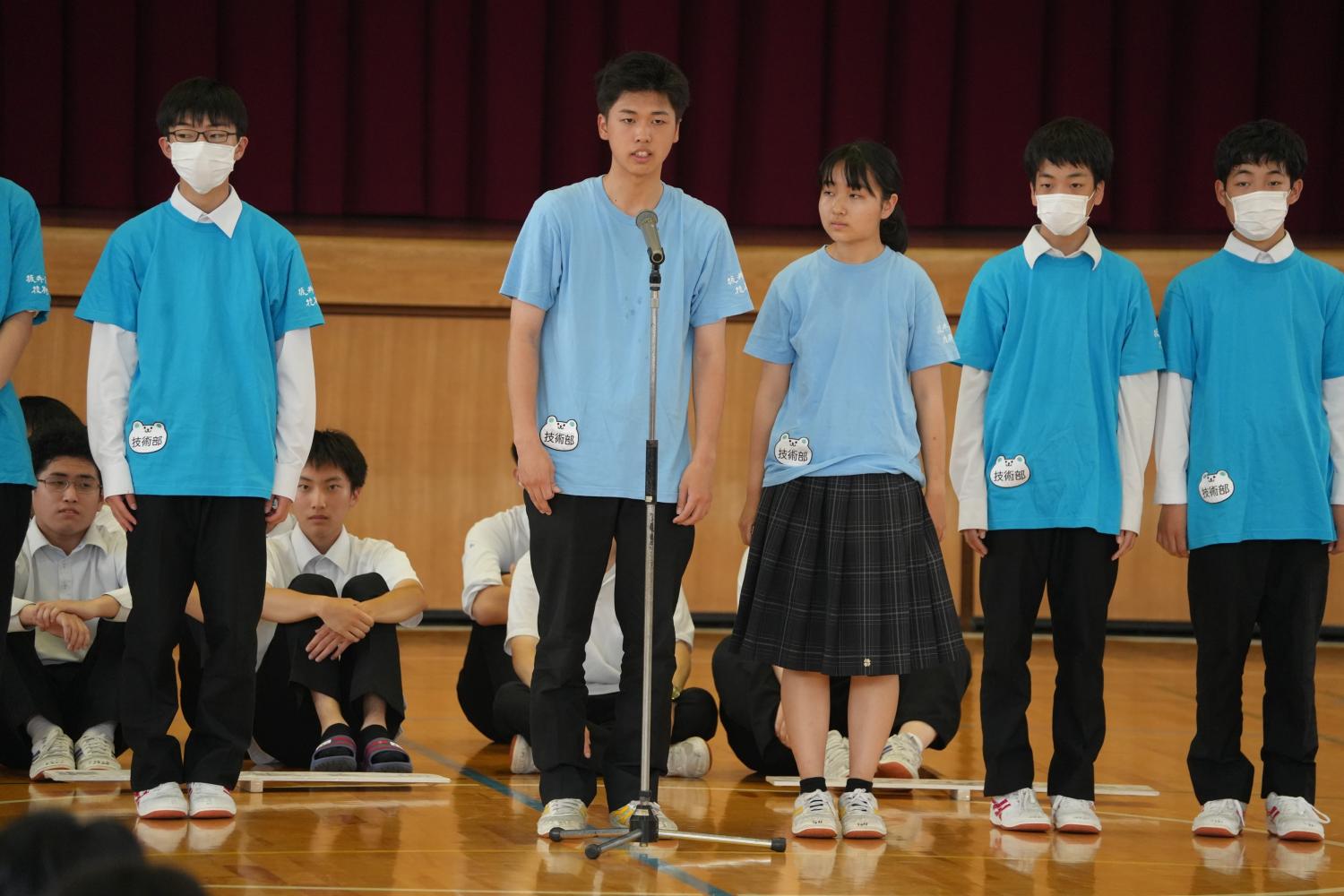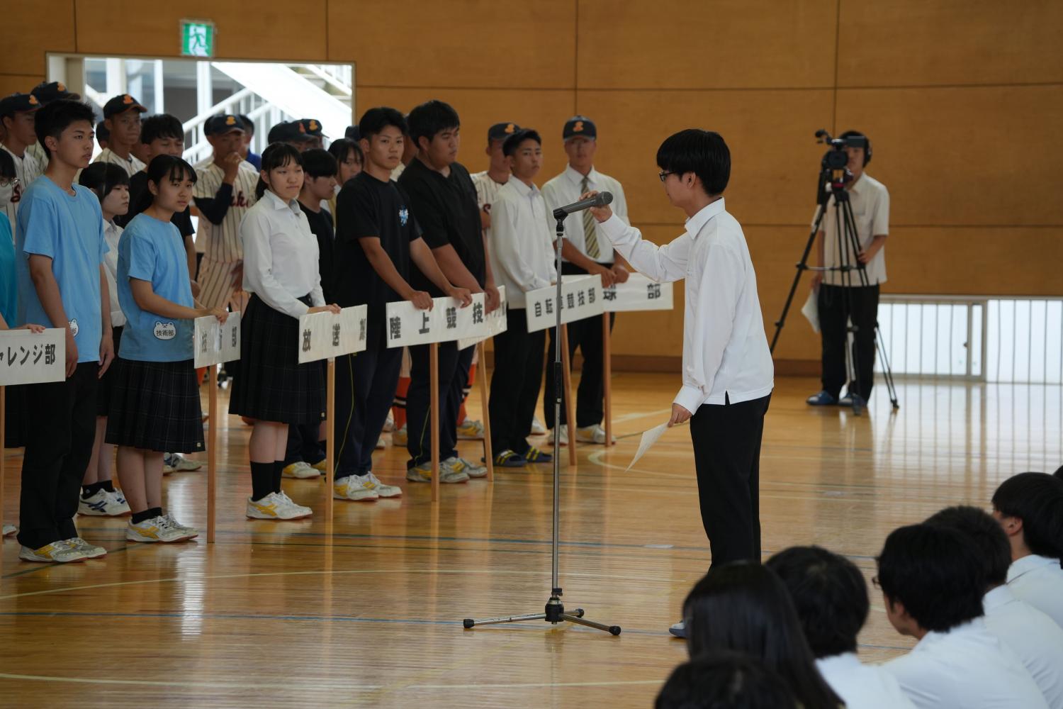 大会に出場する生徒に対して学校長や生徒会副会長からの激励の