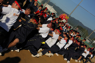 次の写真は後半の競技「綱引き」と「色別対抗リレー」の様子です。