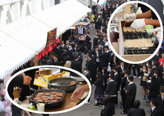 下の写真は模擬店コーナーで文化祭を楽しむ生徒の様子です。
