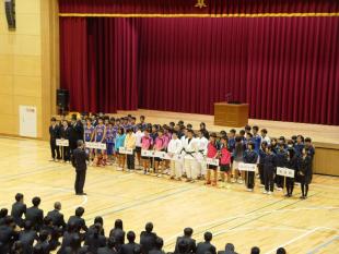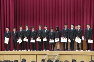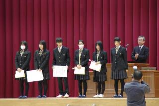 2月2日(木)生徒集会前に、伝達表彰が行われました。