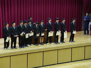伝達表彰を受けた生徒の皆さんは次の通りです。