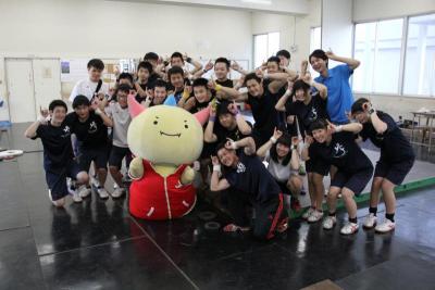「オーッ!!」っとみんなで気合いを入れます。(撮影の最後に行われました。)