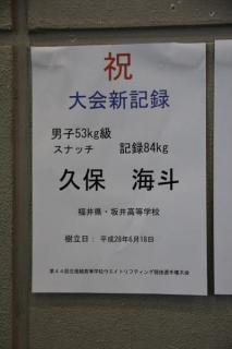 1位 久保海斗 トータル 189Kg スナッチ 84Kg大会新