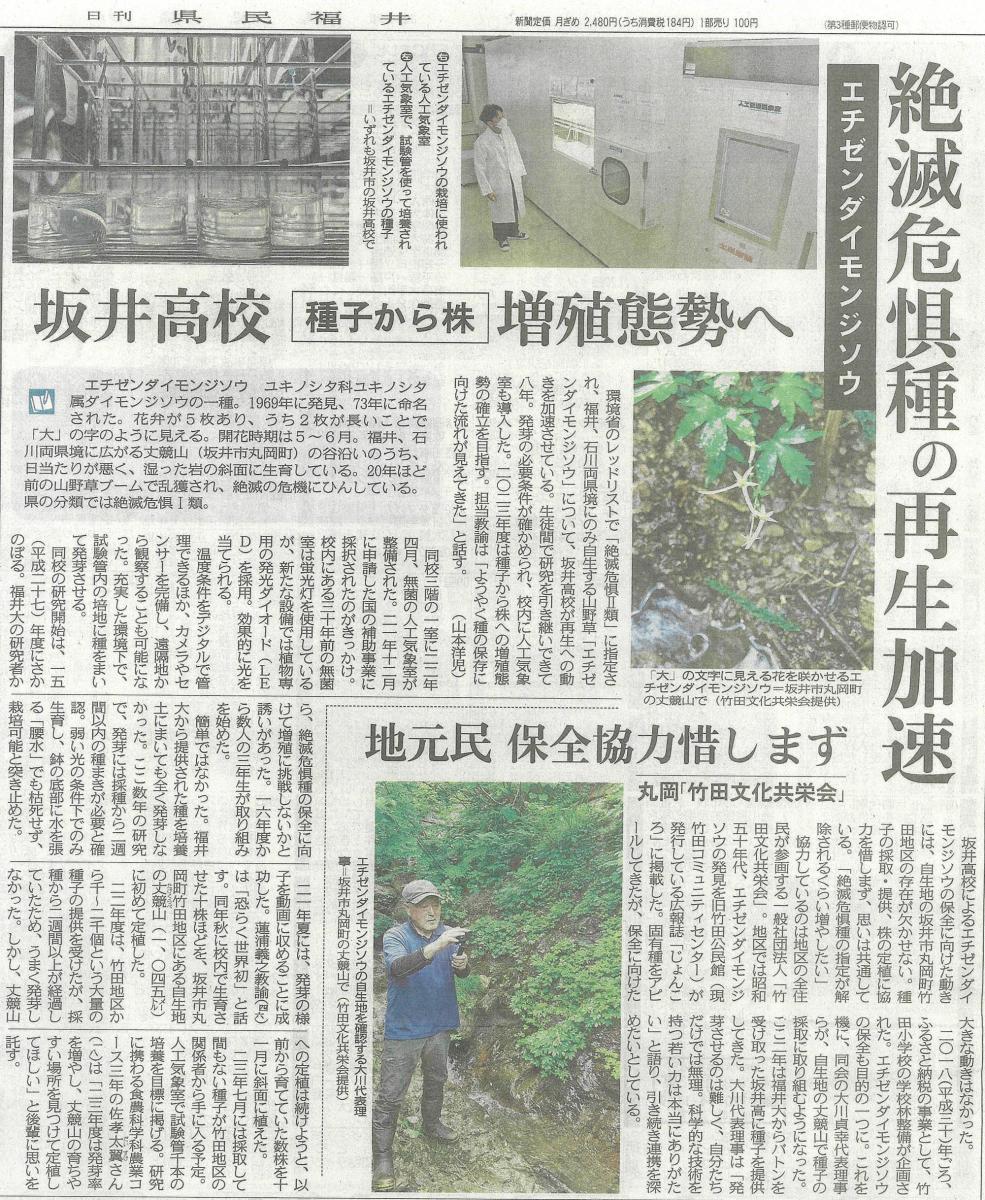 日刊県民福井にエチゼンダイモンジソウの記事が掲載されました