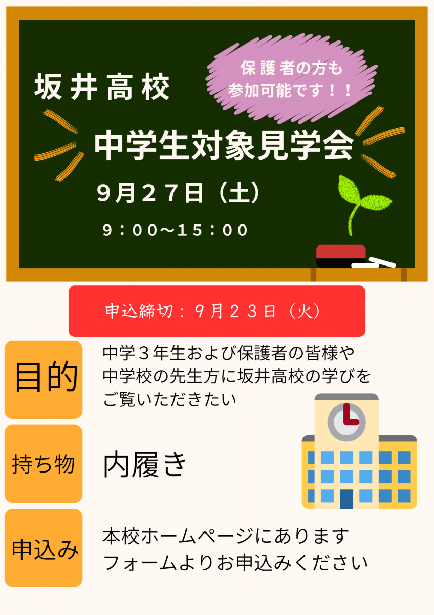 R7_中学生対象の坂井高校授業見学会のお知らせ | 福井県立坂井高等学校