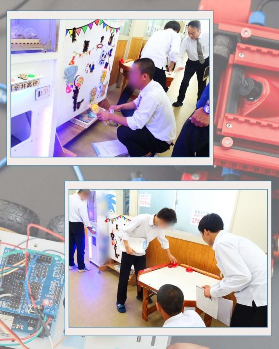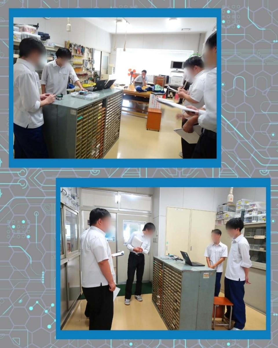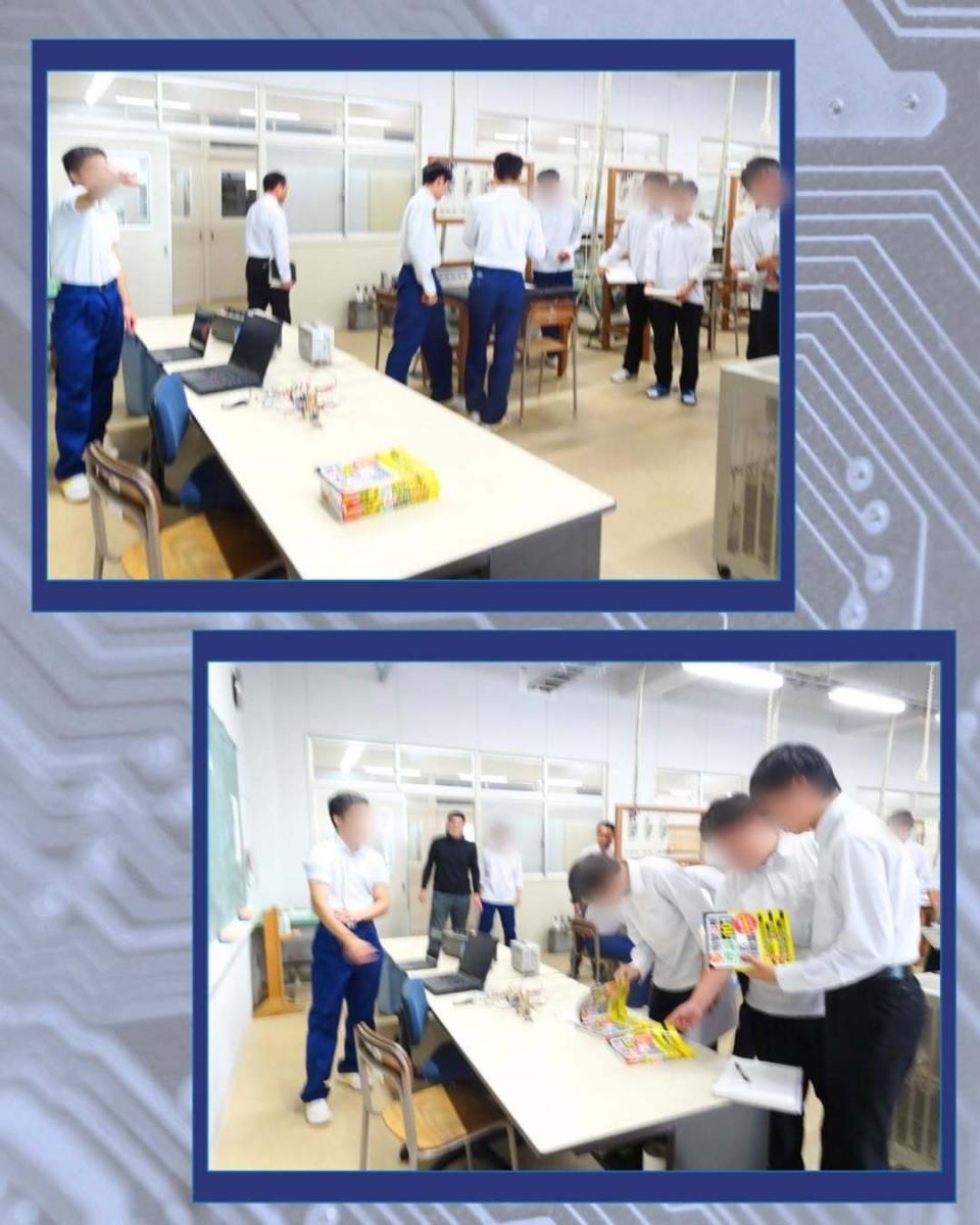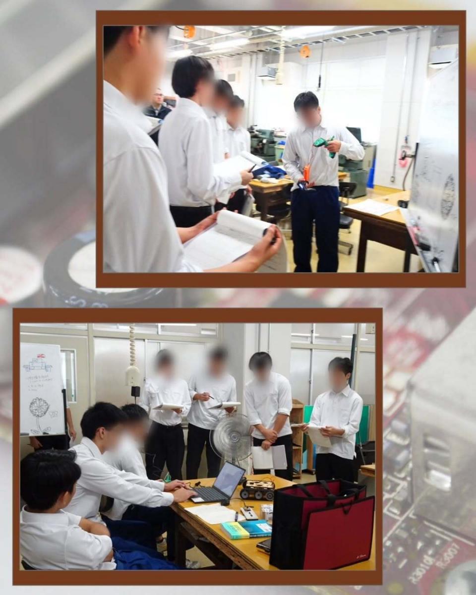 3年生の課題研究の取り組みを2年生が熱心に見学しました。5つのテーマに 分かれて見学をしていく中で、3年生がテーマの発表中に「いいアイディアが あったらください。」と2年生に向けて発言するといった場面も見受けられ、 生徒同士の成長や、自分たちのコースのことを深く考えたり、知ったりする ことができた時間だったと感じます。3年生は今の取り組みを更にブラッシュ アップさせ、2年生は来年の課題研究に向けて頑張ってほしいです。