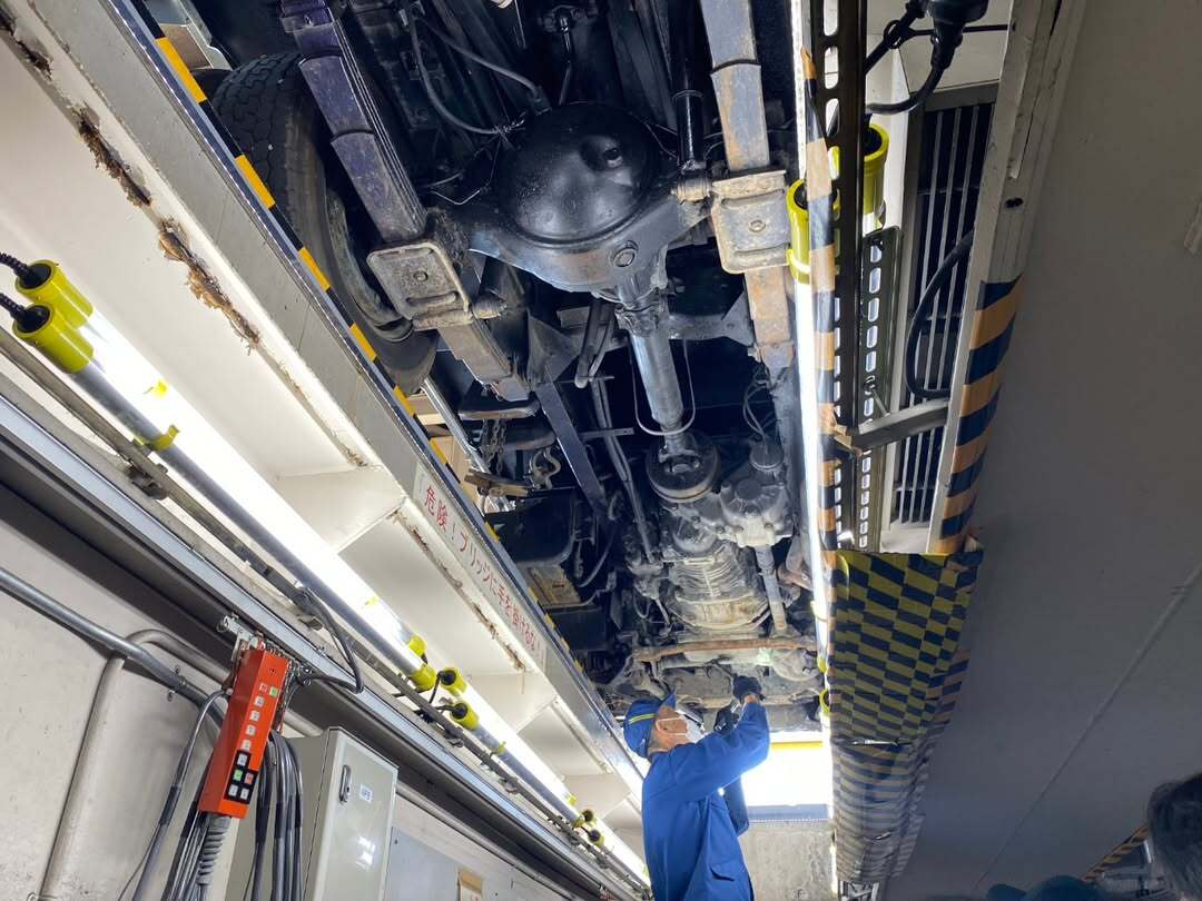 運輸支局に行き、自動車検査の様子を見ることができました。ねじをハンマーで叩いてチェックしたり、最近の