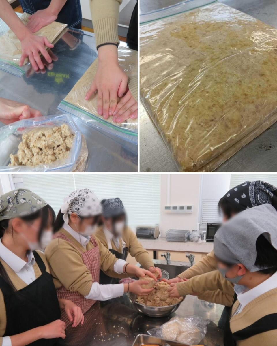 2月5日(木)、坂井高校食品コース1年生が、“みそづくり”の実習をしました。