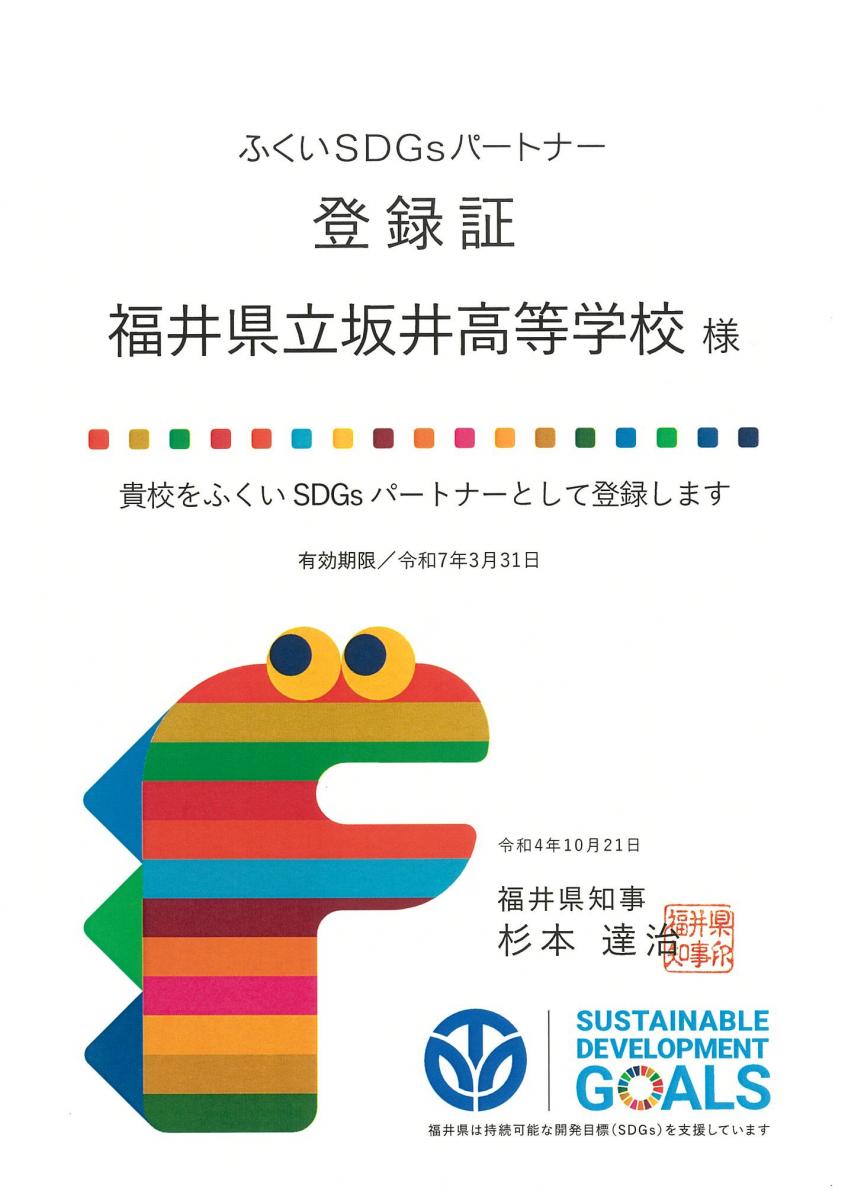 福井県よりふくいSDGsパートナーの登録証が送られてきました。
