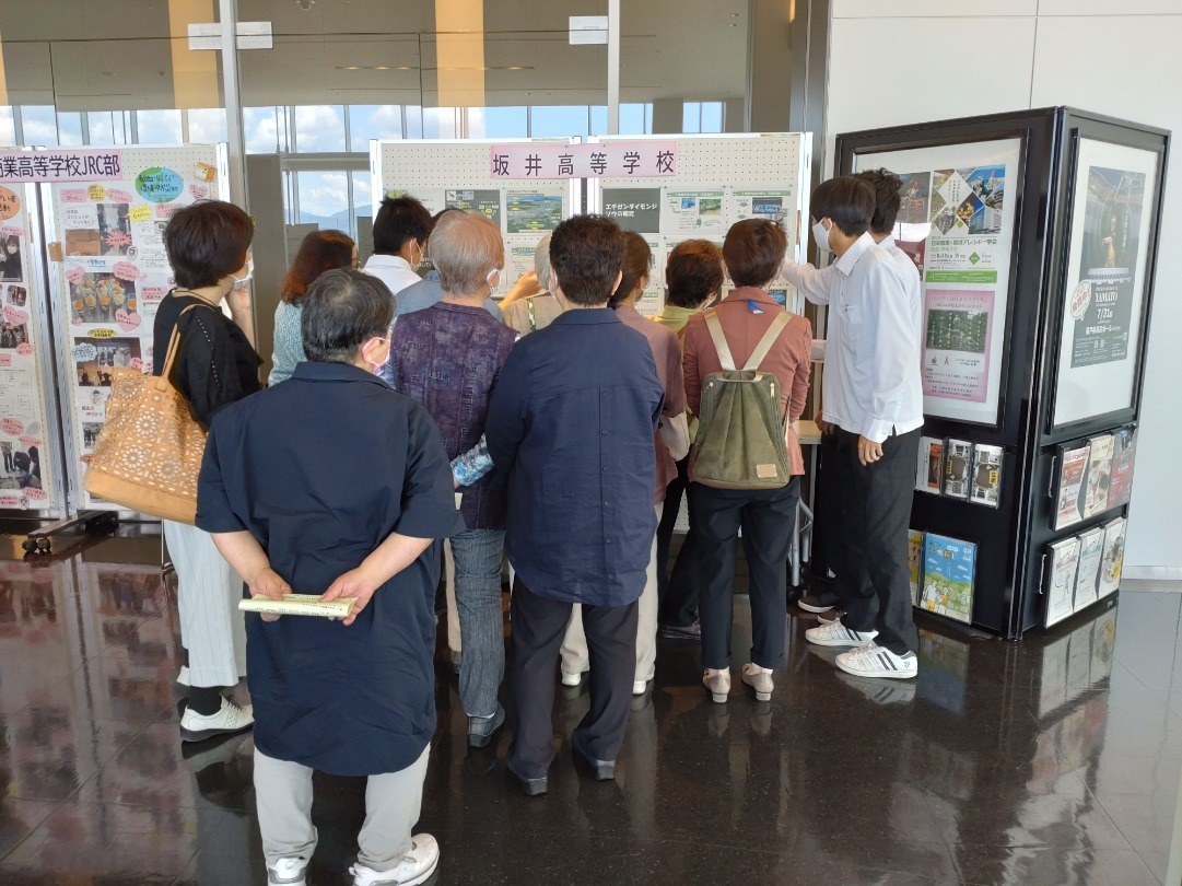 AOSSA8階でいきいき消費者フォーラムが開催され、SDGs活動をポスター発表しました。アゼオトギリとエチゼンダイモンジソウの活動を説明し、エチゼンダイモンジソウの花の現物を見ていただき、多くの方に理解をしていただきました。活動を広めることができ、SDGs目標4の「質の高い教育をみんなで」と17の「パートナーシップで目標を達成しよう」の活動ができました。番組制作で放送部のみなさんも参加していました。