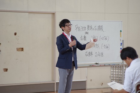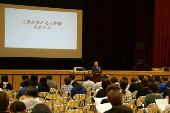 就職説明会では「企業が求める人物像 求める力」というテーマで講師の方からお話をいただいた後、本校教員による説明を行いました。